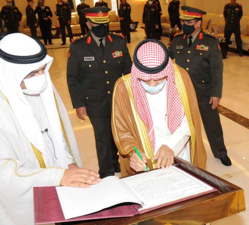 وأضاف الشيخ نواف الاثنين خلال زيارته لمقر وزارة الدفاع: “لن نبخل أو نتراخى في تزويد جيشنا بما يستجد من الأسلحة والآليات وتجهيزه بكل ما يحتاجه لأداء واجبه على أكمل وجه. وسنواصل العمل على تطوير وتحديث أساليب التدريب والتأهيل والإعداد في كافة قطاعاته”.