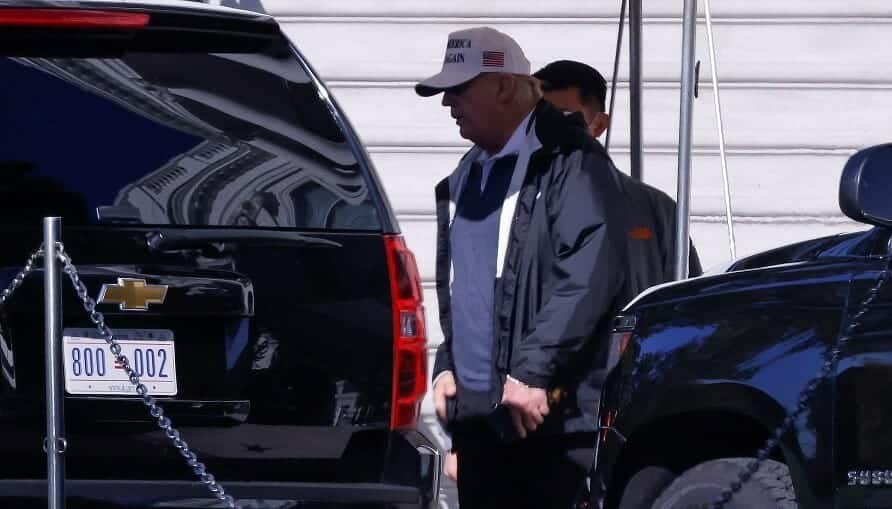 وظهر ترامب مغادرا البيت الأبيض في الصور مرتدياً سترة رياضية وقبعة كتب عليها شعار حملته الإنتخابية: “اجعلوا أمريكا عظيمة مجددا”.
