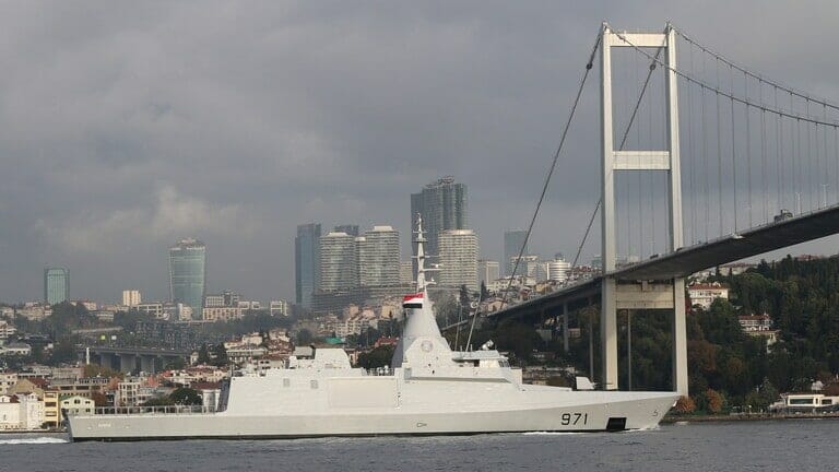 وسائل إعلام تركية ودولية نشرت لقطات توثق لحظة عبور فرقاطتي “الفاتح” و”الإسكندرية” والزورق الصاروخي “علي جاد محمود فهمي” التابعة للبحرية المصرية للممرين البحريين، ورافقتها في الدردنيل برفقة زوارق تابعة لخفر السواحل التركية.