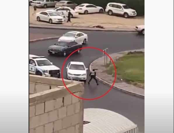 ويظهر في الفيديو الذي نشر ورصدته “وطن”، لحظة محاولة الشرطي إيقاف أحد المستهترين، وحين اقترب من السيارة ومر من أمامها، تفاجأ بالمستهتر ينطلق بسرعة للهرب.
