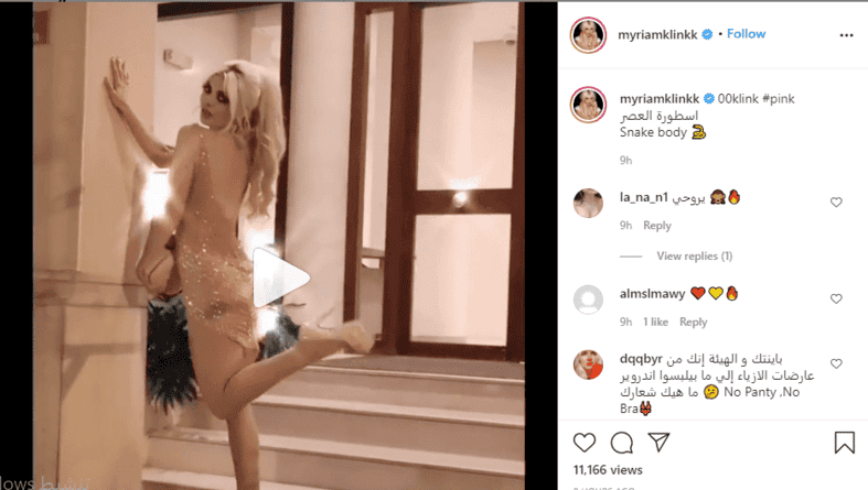 نشرت اللبنانية ميريام كلينك فيديو فاضح عرضها لهجوم عنيف، كشفت فيه عن مفاتنها ومناطقها الحساسة لكسب مزيد من المتابعين والمشاهدات عبر أسلوبها الرخيص.