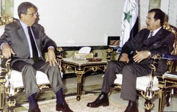 وأوضح أنه التقى بـ”صدام حسين” عدة مرات في محاولات لإعادة الجانبين إلى طاولة المفاوضات وكيفية لقائه مع الرئيس العراقي. وسعيه إلى إقناع الأخير بالقبول بعودة المفتشين الدوليين إلى العراق.