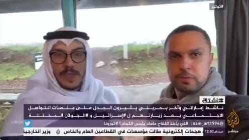 نشطاء إماراتيون وبحرينيون يثيرون موجة من الغضب على منصات التواصل الاجتماعي بعد زيارتهم #إسرائيل و #الجولان المحتلة.. ماذا قالوا؟#التطبيع_الإماراتي_البحريني_الإسرائيلي pic.twitter.com/5h4KLKCb1o