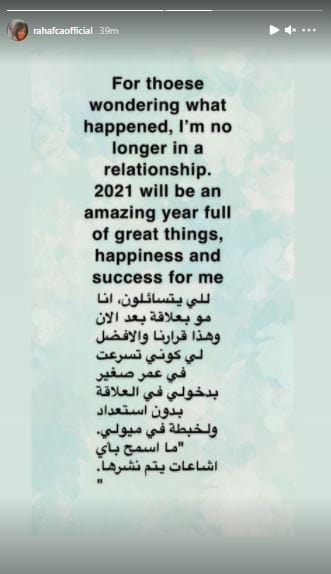 وقالت رهف القنون عبر حسابها في “انستغرام” إنّها انفصلت عن زوجها الكونغولي “لوفولو أندي”.