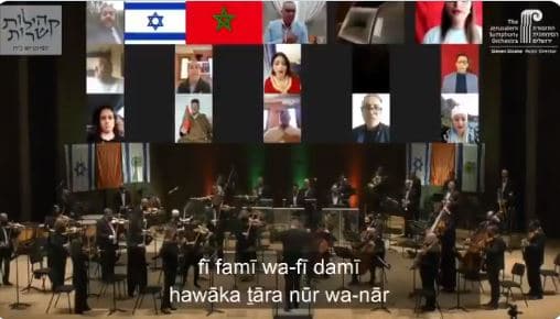 في رساله سلام للشعب المغربي بادرت الاوركسترا السمفونية أورشليم القدس بغناء النشيد الوطني المغربي 🇮🇱🇲🇦 pic.twitter.com/IRM0Cjzv6B— إسرائيل بالعربية (@IsraelArabic) December 28, 2020