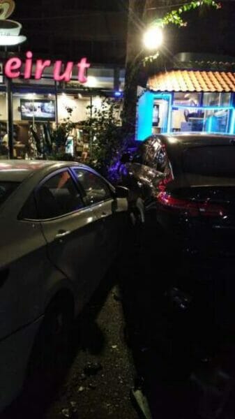 وقال شهود عيان إن وديع الشيخ كان يجلس على طاولة بمواجهة سيارته الاولى التي قذفها الاصطدام العنيف واستقرت فوق حوض للزهور.