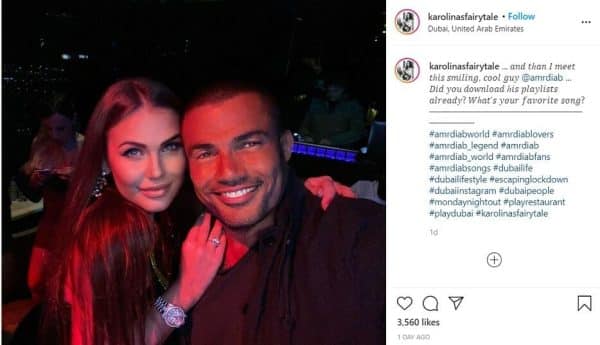 ونشرت كارولينا زوبروفا عبر حسابها على “انستجرام” نفس الصورة التي جمعتها بعمرو دياب وعلقت عليها: “قابلت هذا الشاب الرائع المبتسم، هل سمعتم ألبومه الجديد؟ ماهي أغنيتكم المفضلة؟”.
