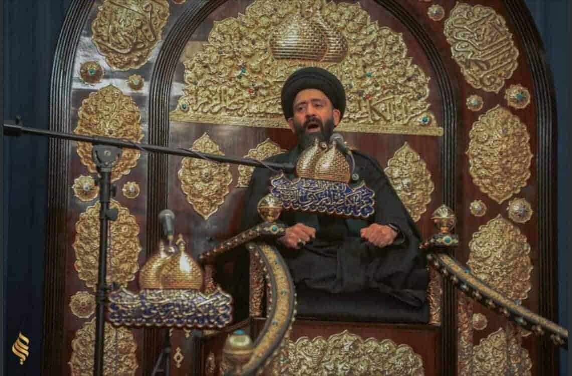 كما أظهر الفيديو رجل الدين الشيعي علي الطالقاني، وهو يعتلي المنبر لأداء خطبة دينية.