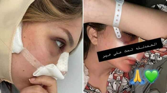 وظهرت شيماء بالفيديو الذي نشرته لطمأنة جمهورها، بوجه متورم وكدمات زرقاء تغطي عينيها، وتتحدث بصعوبة.