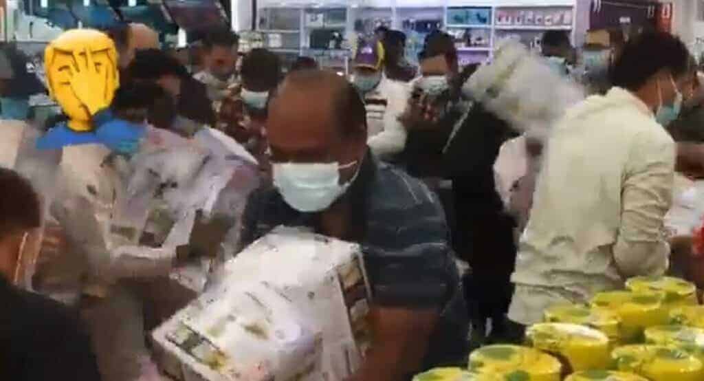 وأوضح المقطع المتداول والذي رصدته (وطن)، تجمهر المواطنين وهجومهم بصورة كبيرة على السلع المتواجدة داخل المول.