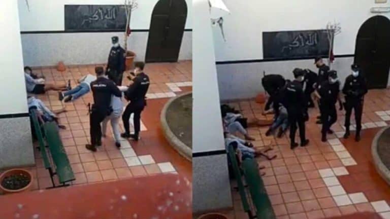 ويدخل عناصر من الشرطة الإسبانية إلى المسجد ويبدأون بضرب القاصر الذي كان يبكي، كما يقومون بضرب مجموعة أخرى بطريقة وحشية.