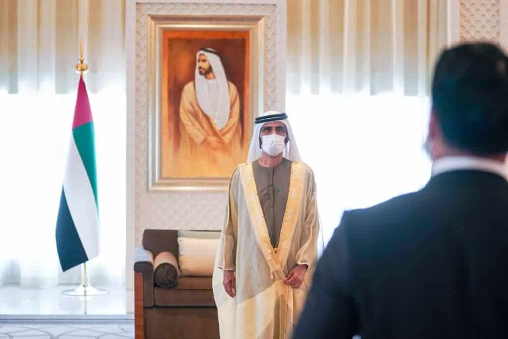 محمد بن راشد يتسلم بحضور منصور بن زايد أوراق اعتماد سفراء جدد لدى الدولة وذلك في قصر الوطن بأبوظبي. #الإمارات pic.twitter.com/MxrGuLFRkO