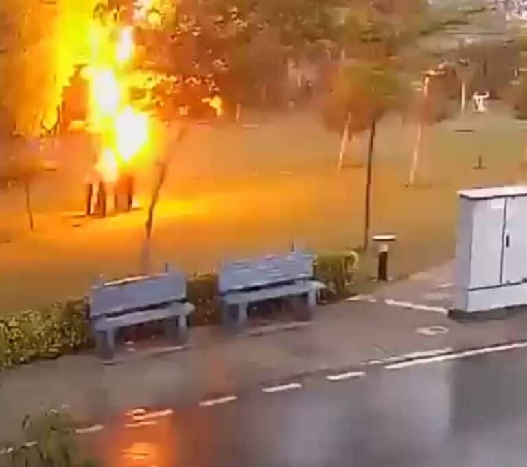 ويبين المقطع سقوط الرجال الأربعة على الأرض بعدما أصابتهم ضربة البرق بشكل مباشر وقويّ.
