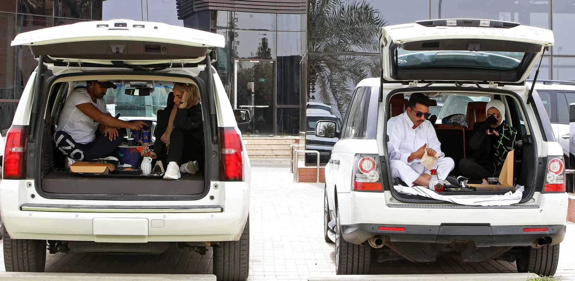 سكان الكويت أثناء تناولهم للطعام داخل السيارات؛ بعد إغلاق المطاعم والمقاهي! pic.twitter.com/POt4om8EBE