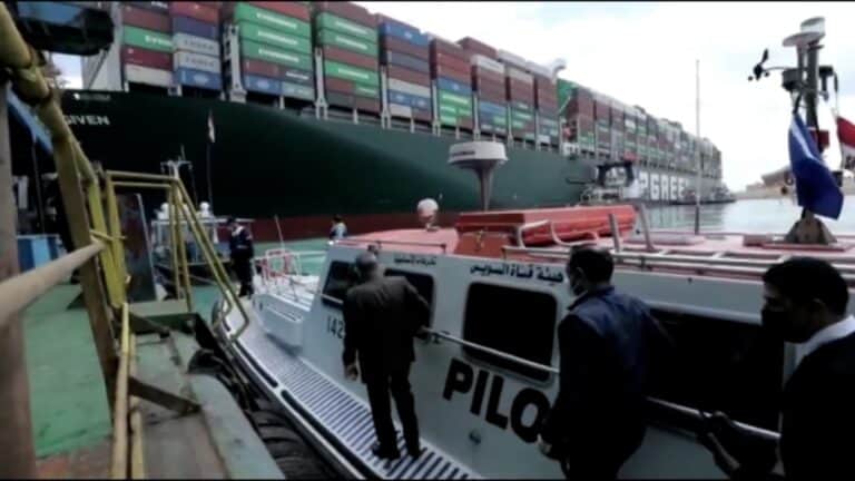 كما وأشارت بلومبيرغ إن السفينة لم يبحر معها قاطرة مرافقة عبر القناة، كما أن السفينتين اللتين كانتا أمامها مباشرة كان لديهما كل واحدة. قاطرة مرافقة.