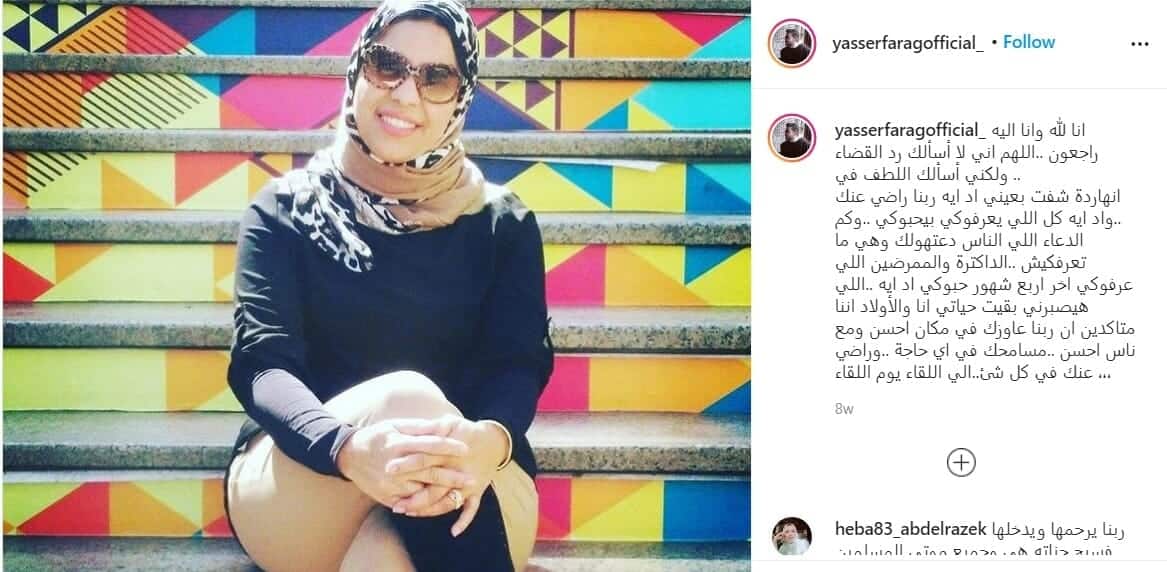 كما وأضاف: “وكم الدعاء اللي الناس دعتهولك وهي ما تعرفكيش.. الدكاترة والممرضين اللي عرفوكي آخر أربعة أشهر حبوكي قد إيه. اللي هيصبرني بقية حياتي أنا والأولاد إننا متأكدين إن ربنا عاوزك في مكان أحسن ومع ناس أحسن.. مسامحك في أي حاجة.. وراضي عنك في كل شىء.. إلى اللقاء يوم اللقاء”.