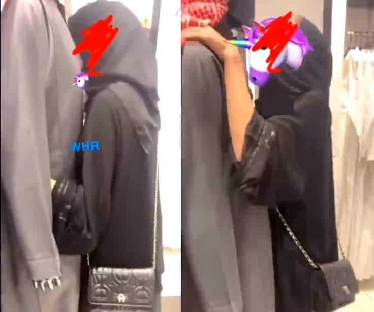 وظهرت الفتاة بالفيديو الذي رصدته “وطن”، وهي ترتدي عباءة وغطاء رأس، وتقترب من “مانيكان” عرض عليه الزي الخليجي من ثوب وشماغ، وتقوم باحتضانه ولمسه بطريقة غير طبيعية.