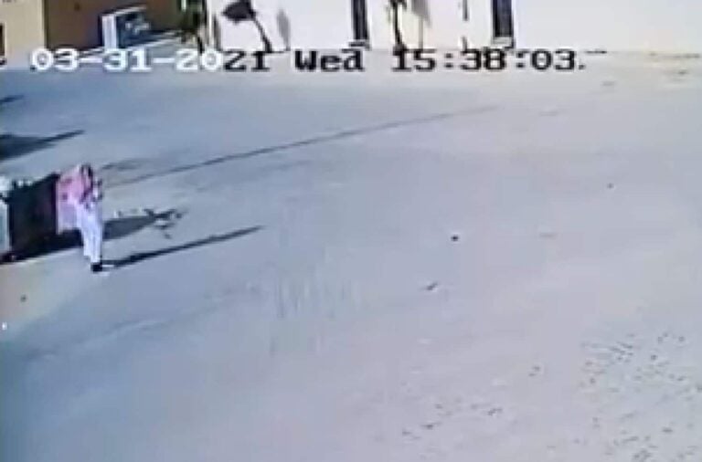 وظهر بالمقطع المتداول قبل أسبوع، والذي التقطته كاميرات المراقبة، الضحية يقف بين مجموعة من الشبان. وفجأة يأتي الجاني مسرعاً نحوهم. فيفرون جميعهم، لكنه يتمكن من دهس الشاب.