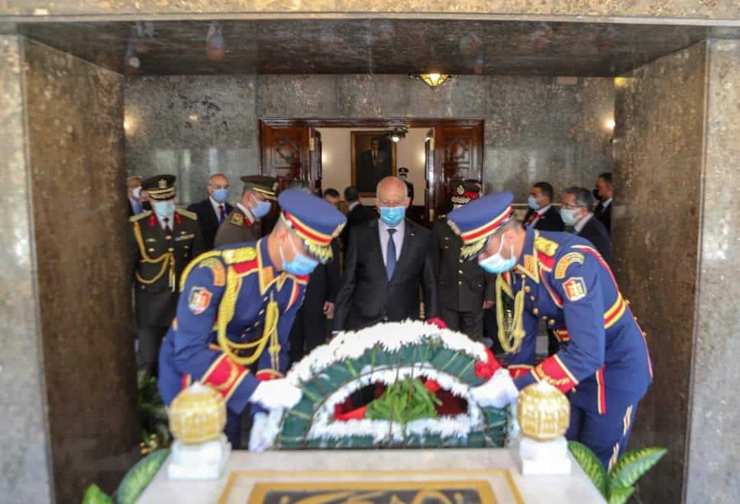 وشاركت صفحة الرئاسة التونسية أيضاً مقطع فيديو للرئيس التونسي خلال زيارته للأضرحة، ووضعه لأكاليل الزهور وتلاوته الفاتحة.