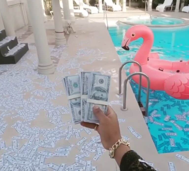 ونشر رمضان، فيديو عبر حسابه الرسمي على “انستجرام”، ظهر خلاله مسترخياً في حمام السباحة. وحوله رزم كثيرة من الدولارات، ويقوم بنثرها في كل مكان.