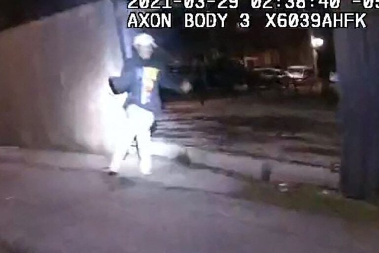 ويظهر فيديو كاميرا شخصية الضابط وهو يصرخ “ألقه”، قبل إطلاق النار على آدم توليدو مرة واحدة في صدره في 29 مارس/آذار الماضي.