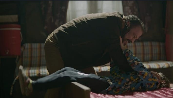 حيث يظهر عمرو عبدالجليل وهو يخنق طفلة عمرها 6 سنوات بطريقة مروعة، وحين يشاهدها شقيقها البالغ من العمر 8 سنوات، يحاول الهروب، ولكن يلحقه الممثل، ويخنقه.