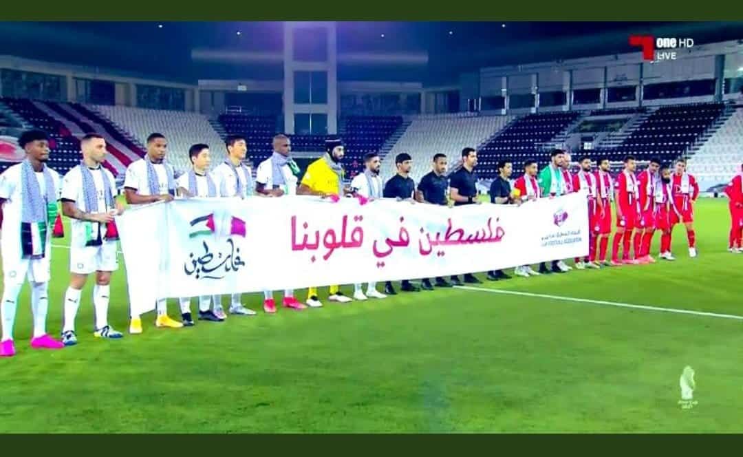 من جهته، علّق الشيخ جوعان بن حمد، شقيق امير دولة قطر، على لفتة لاعبي السد والعربي بالقول إنّ “فلسطين القضية العادلة والأقصى في القلوب” .