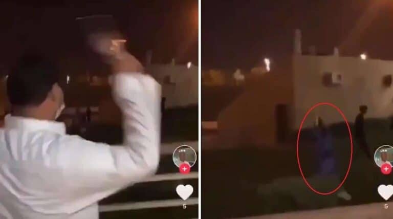 ويظهر الرجل الملتحي بالفيديو الذي انتشر على نطاق واسع عبر مواقع التواصل الاجتماعي، وهو يرتدي الثوب دون شماغ أو عقال.