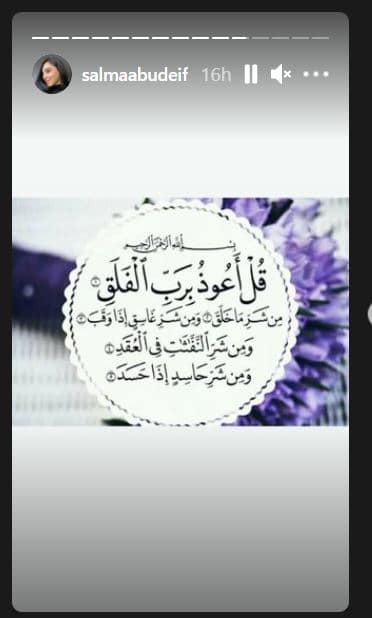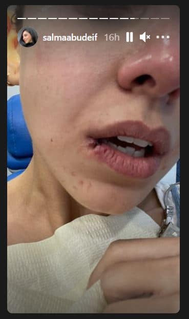 كما نشرت سلمى صورة توثق إصابة شفاهها بالقطع، ونشرت سورة (الفلق) وعلقت: (الحمد لله الحمد لله الحمد لله الحمد لله على كل شيء، وتابعت: (لا تحكم أبدًا على الأشخاص فقط من صورهم التي لا تعرف ما يمرون به، شكرًا).