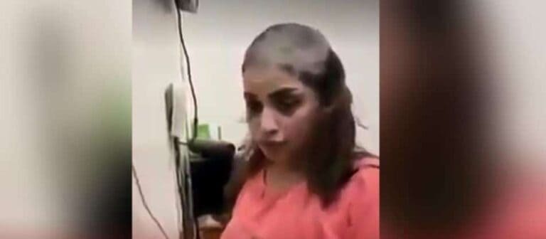 وتظهر الفتاة بالفيديو الذي تابعته (وطن)، وهي تقف مستسلمة دون أي مقاومة، بينما يقوم آخر بحلق شعرها، ويظهر أثار دماء وعنف على يدها.