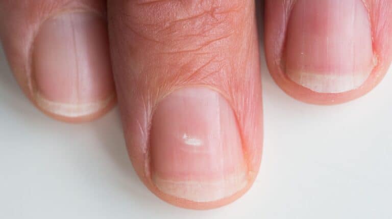 قد تلاحظ بقعًا أو نقاطًا بيضاء على طول أظافرك إذا كنت تعاني من نقص في بعض المعادن أو الفيتامينات، وخصوصا نقص الزنك و نقص الكالسيوم.
