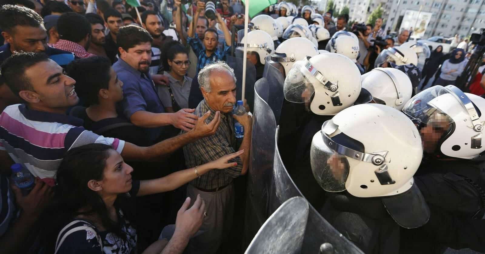 وأمطرت قوات الأمن المشاركين في المظاهرة بقنابل الغاز واعتدت عليهم بالضرب، وأصيب عدد منهم برضوض وحالات اختناق.