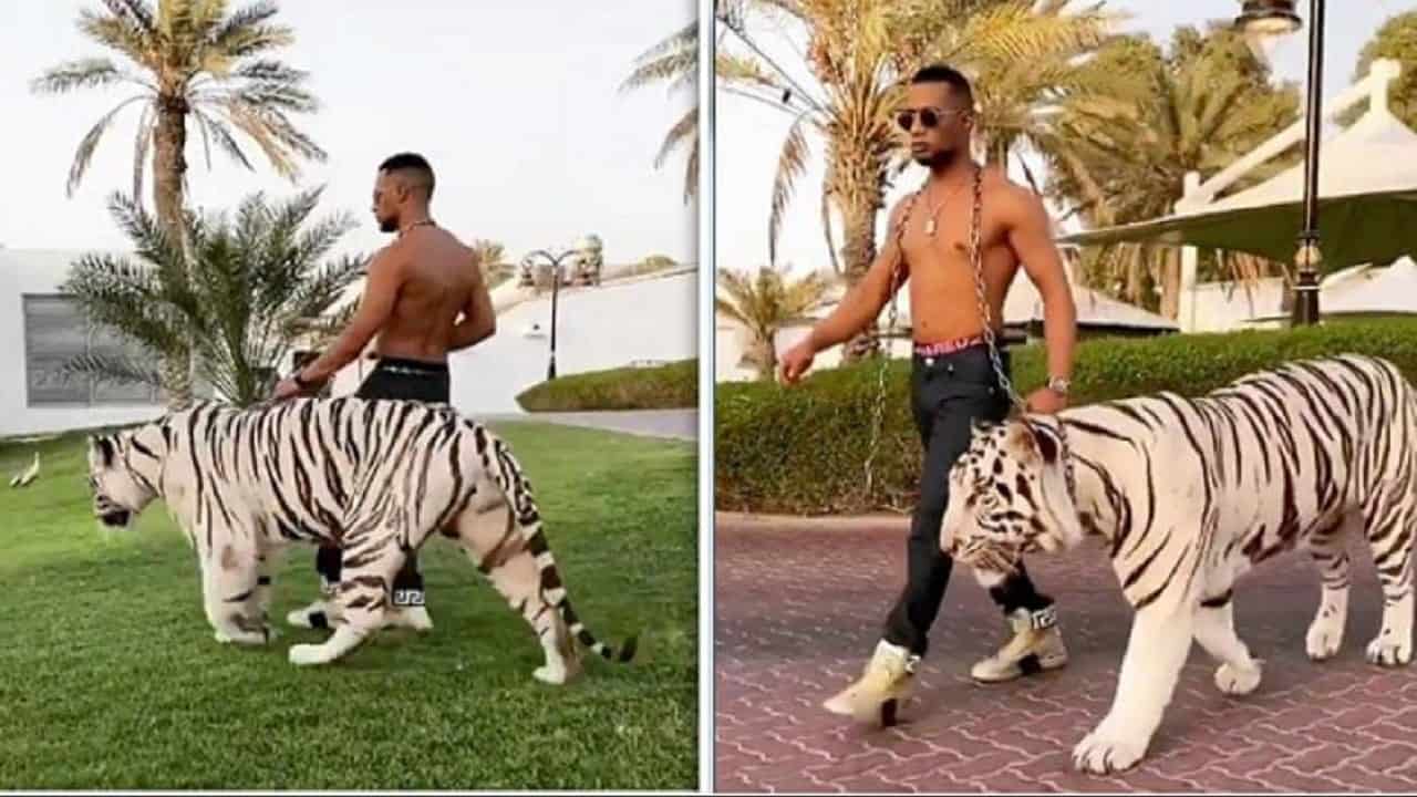 وأظهرت الصور رمضان في حديقة القصر رفقة نمر أبيض وكان يسير برفقته وقد خلع ملابسه وكان عاري الصدر، وصور أخرى في زوايا مختلفة من القصر الفاره.