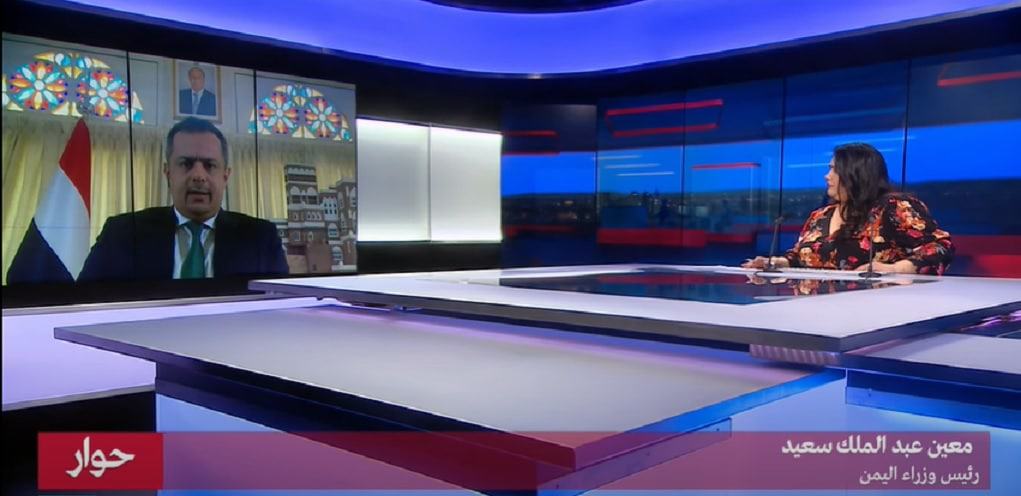 وطن- سخرت مذيعة قناة “فرانس 24” ميرنا الجمال، من رئيس الوزراء اليمني معين عبدالملك سعيد، والذي كان ضيفها في برنامج “حوار” في مشهد أثار جدلا واسعا.