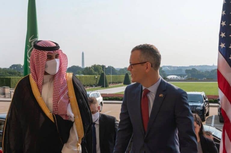 والتقى الأمير خالد لفترة وجيزة وزير الدفاع الأمريكي لويد أوستن، والجنرال مارك ميلي رئيس هيئة الأركان المشتركة، في مقر وزارة الدفاع “البنتاغون”، حسبما أفاد مسؤول تحدث شريطة عدم الكشف عن هويته، وفقاً لقناة “الحرة”.