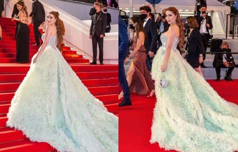 ووصفت الجمهور الفنانة السورية بـ”سندريلا” المهرجان، وانها ملكة في كل مكان وزمان، بينما تساءل بعض المتابعين عن عدم نشر نسرين طافش أي صورة للفستان من الأمام.