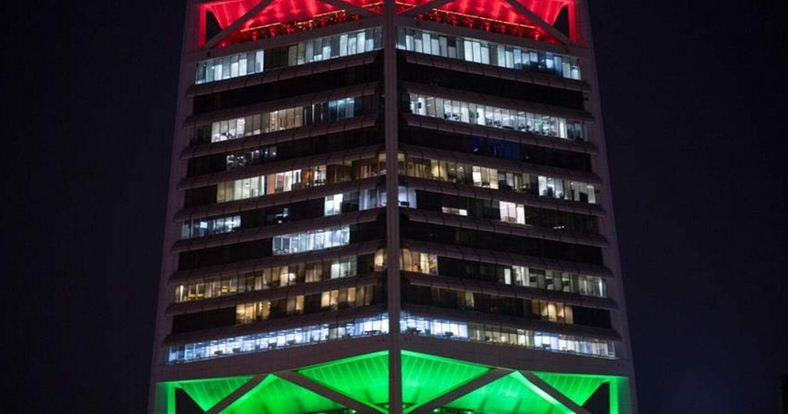 ما أجملها من صورة معالم العاصمة الرياض تتزين بألوان علم #عمان ابتهاجًا بزيارة السلطان #هيثم_بن_طارق حفظه الله تعالى حللتم أهلًا ونزلت سهلًا .#السعودية_عمان_مستقبل_مشرق pic.twitter.com/Jjmh4gmjwe