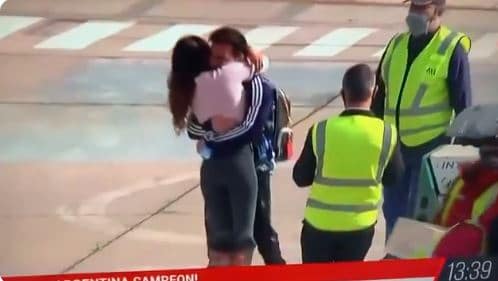 رصدت عدسات الكاميرا الاستقبال الحار من الأرجنتينية “أنتونيلا روكوزو” لزوجها ليونيل ميسي، بعد عودته إلى بلده عقب التتويج الأول له مع منتخب الأرجنتين في بطولة كوبا أمريكا 2021 بعد تمكنه من الفوز على البرازيل بهدف نظيف دون رد.
