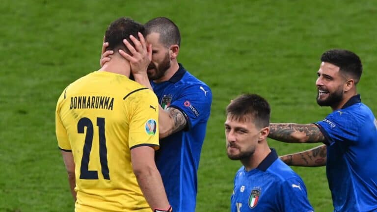 وتمكن الحارس الإيطالي دوناروما من التصدي لضربة الجزاء الذي نفذها جادون سانشو وكذلك إبعاد ضربة اللاعب بوكايو ساكا، حيث كان الأخير بحاجة للتسجيل لإبقاء آمال منتخب إنجلترا في الفوز باللقب.
