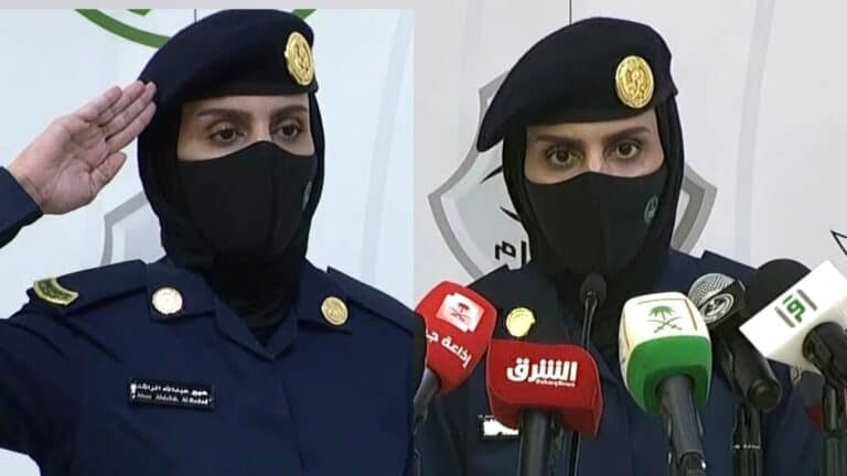 وفي مقطع الفيديو الذي بثه التلفزيون السعودي وانتشر على نطاق واسع، وبعد أن أدت عبير الراشد التحية العسكرية قالت: “نحييكم من مركز العمليات الأمنية الموحدة بمنطقة مكة المكرمة.”