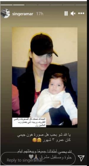 وتابعت قمر اللبنانية: (الحمدالله تحملت كل الصعوبات وأقسى الظروف وربيت ابني بفضل رب العالمين، الله يحمي أطفالنا جميعاً ويبتعلهم أيام حلوة ومستقبل مشرق).