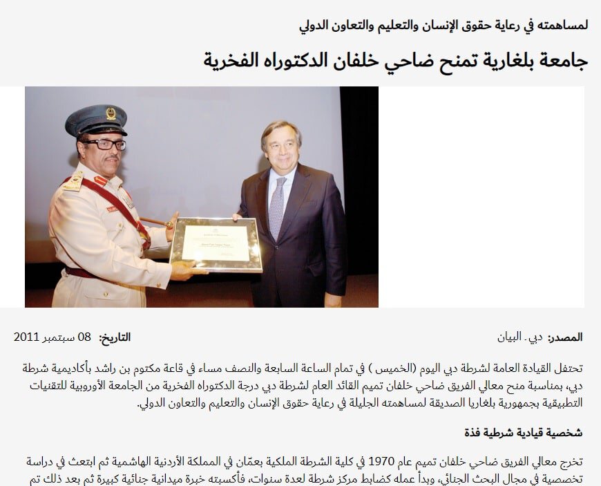 “البيان” تزعم منح جامعة بلغارية ضاحي خلفان الدكتوراه الفخرية