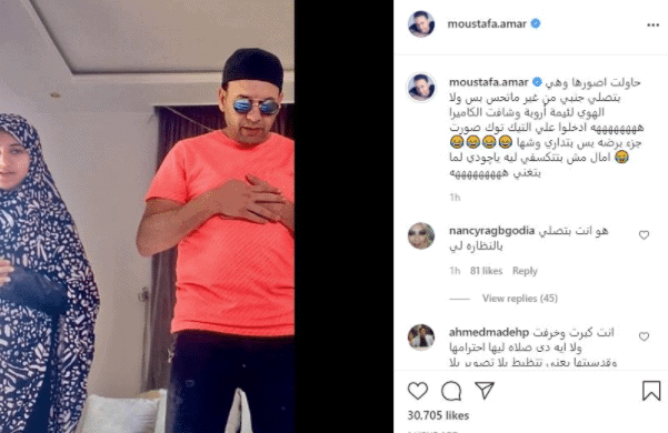 في شأنٍ آخر، حذف الفنان مصطفى قمر صور كان نشرها تجمعه بابنته جودي وهما يصليان، بعد تعرضه لانتقادات .