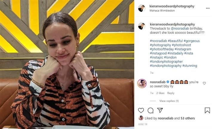 وكان كيران ينشر صوراً لنور عمرو دياب عبر حسابه على (انستجرام)، مرفقة بعبارات غزل.