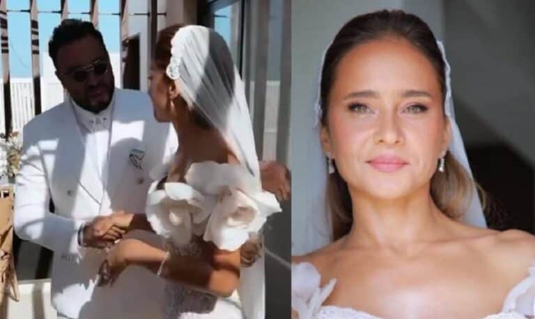 وانتشرت صور تظهر نيللي كريم وهي توقع على عقد الزفاف، وبدت ترتدي بدلة مكشوفة الصدر بطريقة فاضحة.