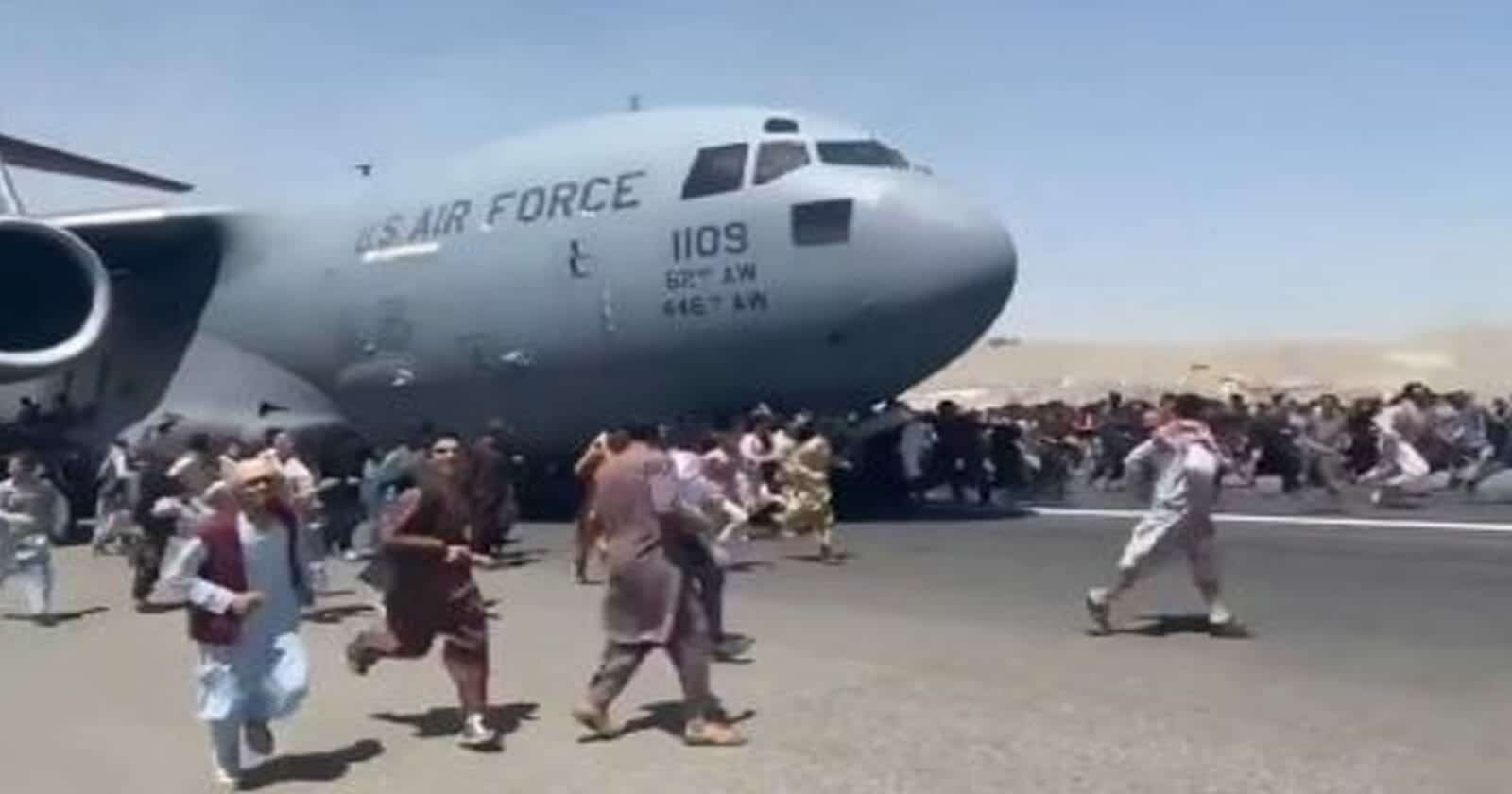 وانتشر مقطع آخر يظهر حشوداً ضخمة من مواطنين أفغان يلاحقون طائرة أثناء إقلاعها.