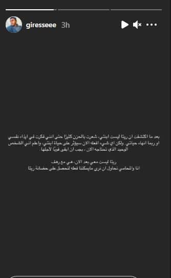 وأشار راندي إلى أن الطفلة الآن مع والدتها رهف، مضيفاً: (أنا والمحامي نحاول أن نرى ما يمكننا فعله لنحصل على حضانة ريتا).