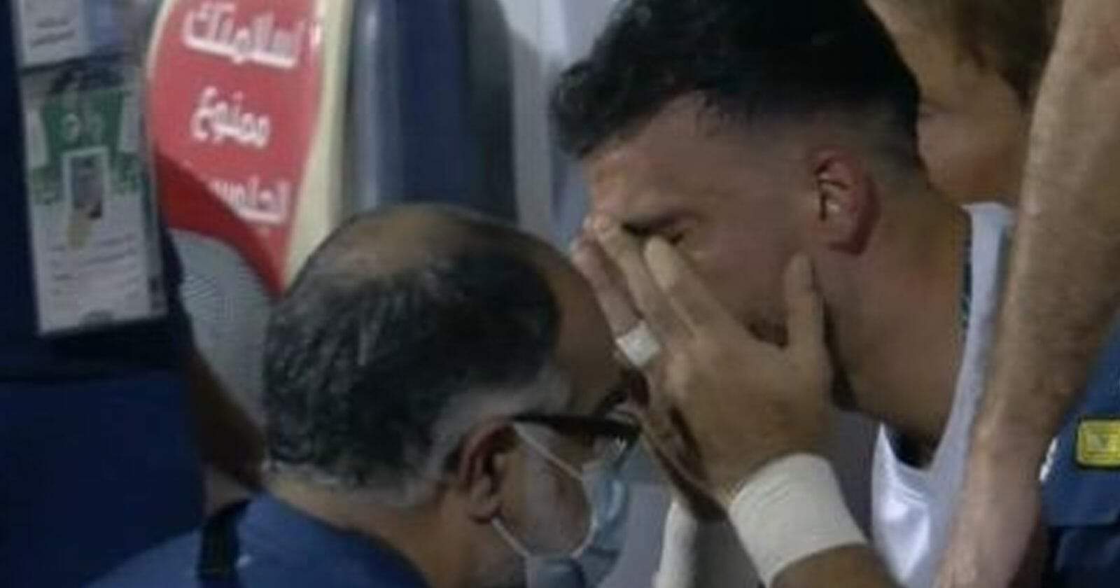 وطن- تداول النشطاء عبر مواقع التواصل الاجتماعي مقطع مؤثر للنجم السوري وهداف الأهلي عمر السومة وهي يبكي وهو على دكة البدلاء بعد تعرضه للإصابة التي أخرجته من الملعب مع بداية مشواره في منافسات الدوري السعودي لهذا الموسم.