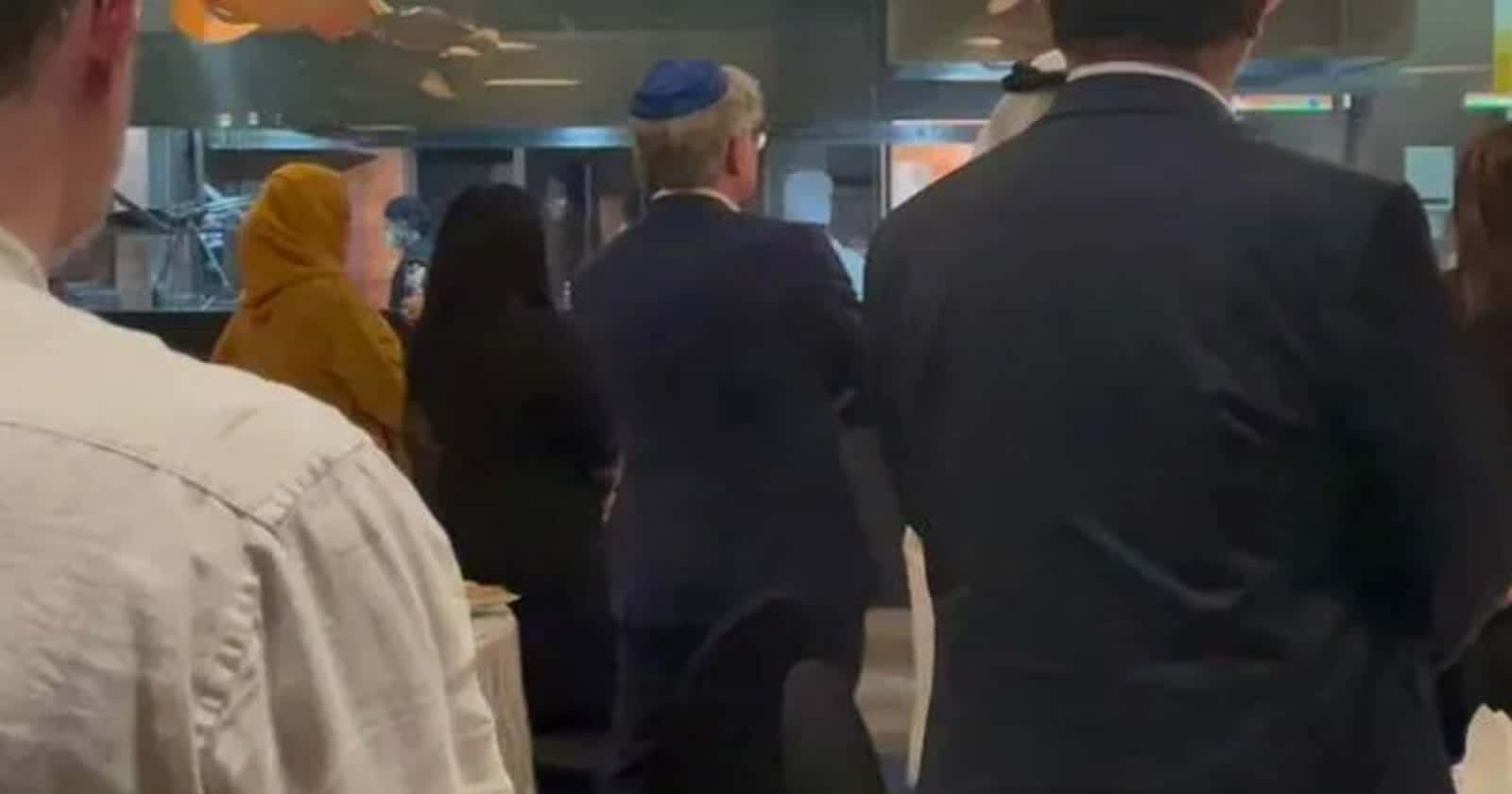 ويظهر المقطع المتداول على نطاق واسع ورصدته (وطن) عددا من اليهود داخل مطعم أو فندق بالبحرين، وكان بعضهم يرتدي القبعة اليهودية.