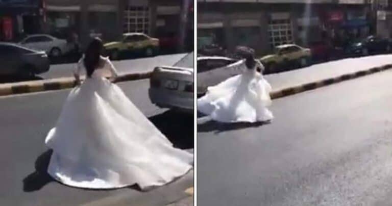 ضجت مواقع التواصل الاجتماعي في الأردن، بمقطع فيديو يوثق مشهداً غير عادي لفتاة تركض في شوارع العاصمة عمان بفستان الزفاف.